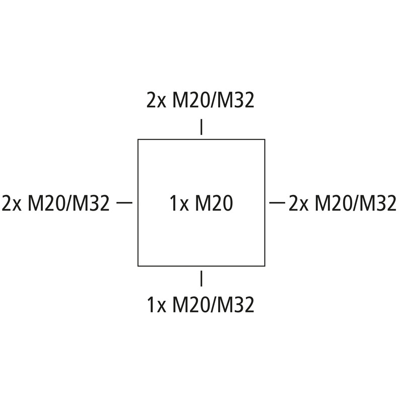 Schutzart IP66/IP67/IP69, Nennquerschnitt 6 mm², zertifiziert durch VDE (DIN EN 60670-1/-22 (VDE 0606-1/-22)), DLG (Ammoniakbeständigkeit), DNV (Klasse: Schiffe & Offshore-Anlagen), Ausschlagmembranen, M20/M32, (1 rückseitig, 7 seitlich), innenliegende Befestigungsstellen, für Installationen im industriellen Umfeld und ungeschütztem Aussenbereich.